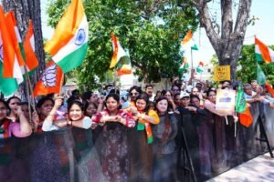 इसके बाद प्रधानमंत्री लगभग 12 किलोमीटर की दूरी सड़क मार्ग से तय कर कैंट क्षेत्र स्थित सभा स्थल पर पहुंचे। इस दौरान सड़क के किनारे हजारों की संख्या में युवा, महिलाएं और आमजन मौजूद रहे। “भारत माता की जय” के नारों से पूरा वातावरण गूंज उठा। लोगों में जबरदस्त उत्साह देखने को मिला और हर कोई प्रधानमंत्री की एक झलक पाने को उत्सुक नजर आया।